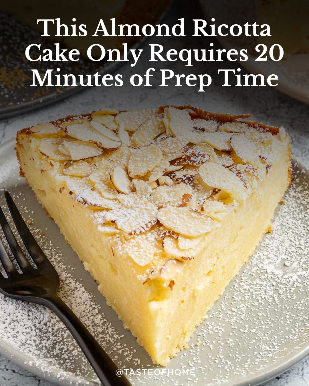 Everybody loves the fluffiness and moistness of a ricotta almond cake! The best news is that this recipe requires only 20 minutes of prep time.
