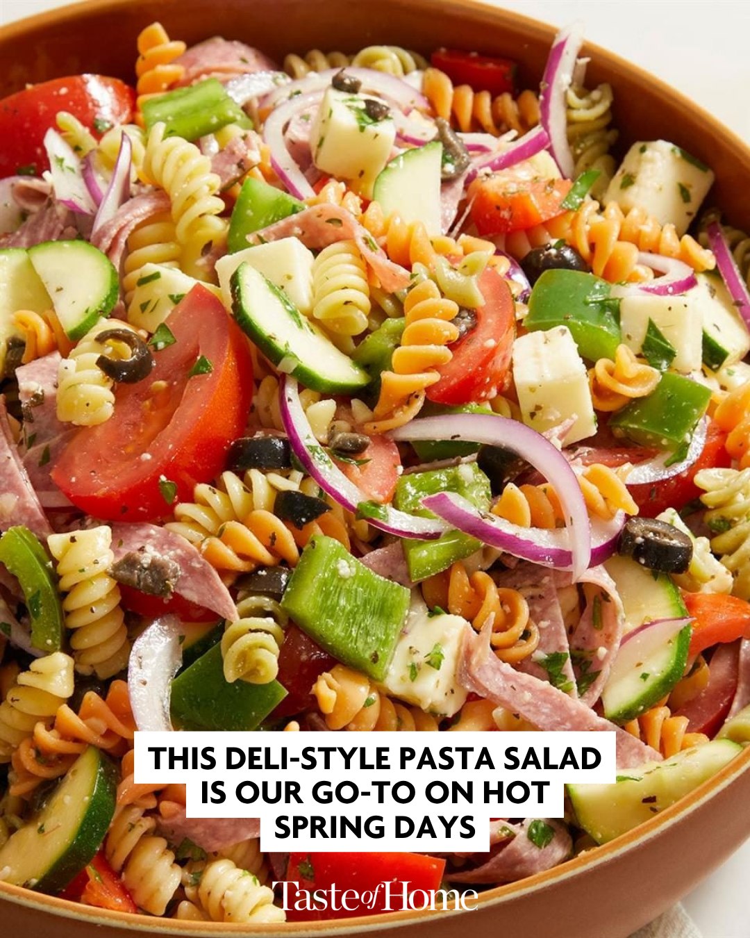 Enjoy a rainbow of colors, flavors and textures with this deli-style pasta salad. It tastes even better the next day.