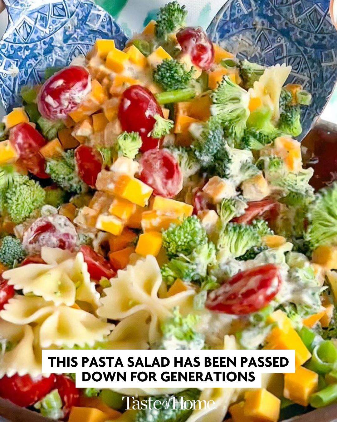 Summer was made for pasta salad, and this creamy, colorful dish is my go-to. My mom whipped it up in the ’90s when every pasta salad was smothered with Italian dressing. That version wasn’t my mom’s speed, so she took a risk and switched it up with mayo. She nervously brought it to a pool party, and to her surprise, it was an instant hit. Soon, it became a highly requested dish. Now my own kids ask for it too. —Elise Jesse, Cincinnati, Ohio