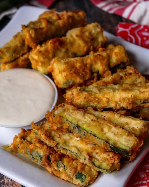 This is a good, very basic recipe on how to fry zucchini. There are no frills, but it’s delicious. The crust is light and fries to a golden brown. When zucchini is abundant definitely prepare a batch (or two) of these fried zucchini sticks. If you like a thicker crust, double dip the zucchini. After the flour, dip it in the egg again and then the flour again. Serve with your favorite dipping sauce. We opted for Holly’s Hot Horsey Sauce and it was fantastic.