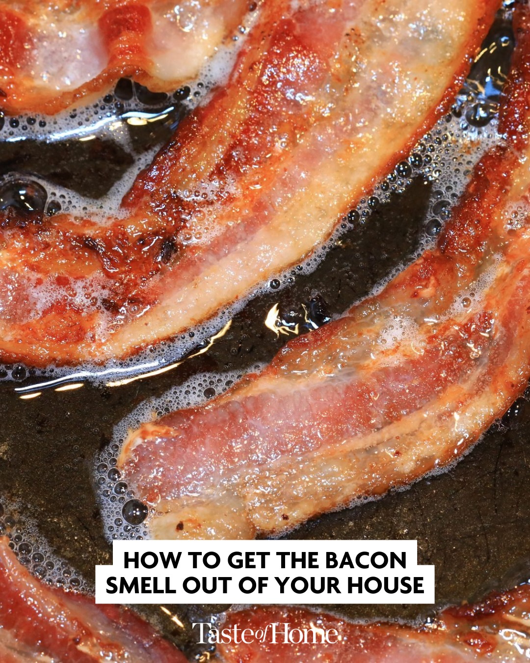 When breakfast is over, here’s how to get the lingering bacon smell out of your house.