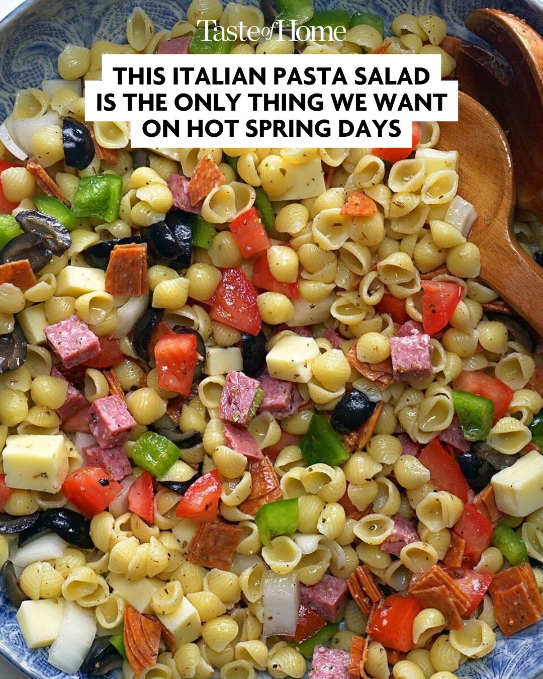 I’m always excited about summer until the first heat wave hits. Then, I’ll do anything to avoid heating up the house! One of my hacks is making a big batch of cold pasta salad for the week. Italian pasta salad is always a crowd-pleaser at potlucks, and it’s so colorful and delicious that I can eat it every day for lunch. It’s packed with all the good stuff—I’m talking big chunks of creamy cheese, crunchy bell peppers, juicy tomatoes, briny olives and bold cured meats—everything I need for a light yet filling meal.