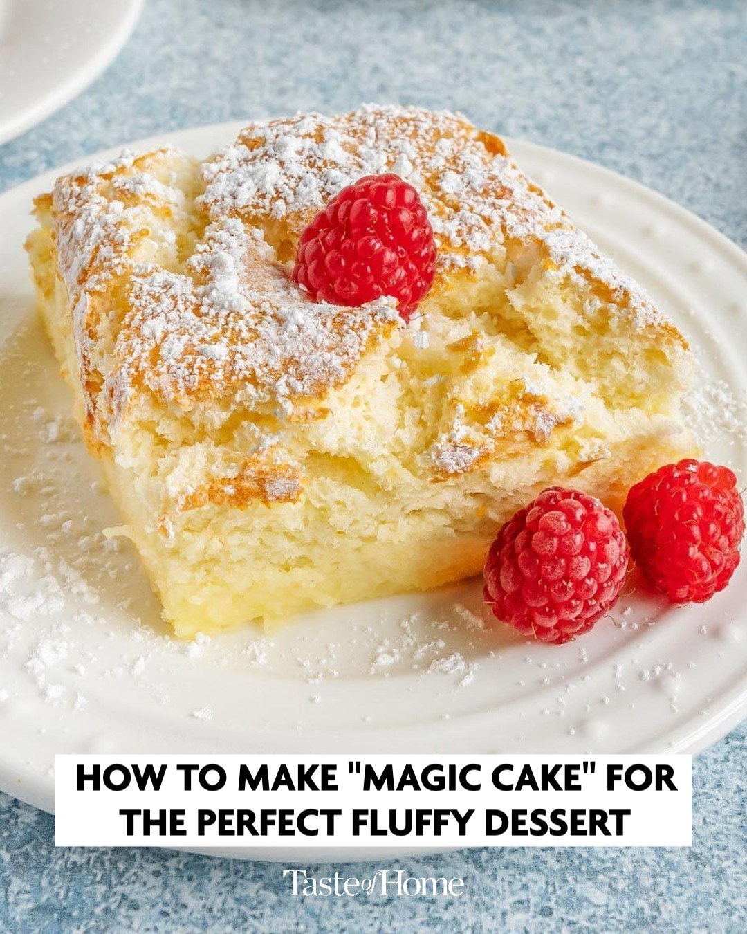 Serve with fruit: Berries are the perfect match for this magic cake. Add fresh blueberries or raspberries on top, or pair it with a blueberry sauce.