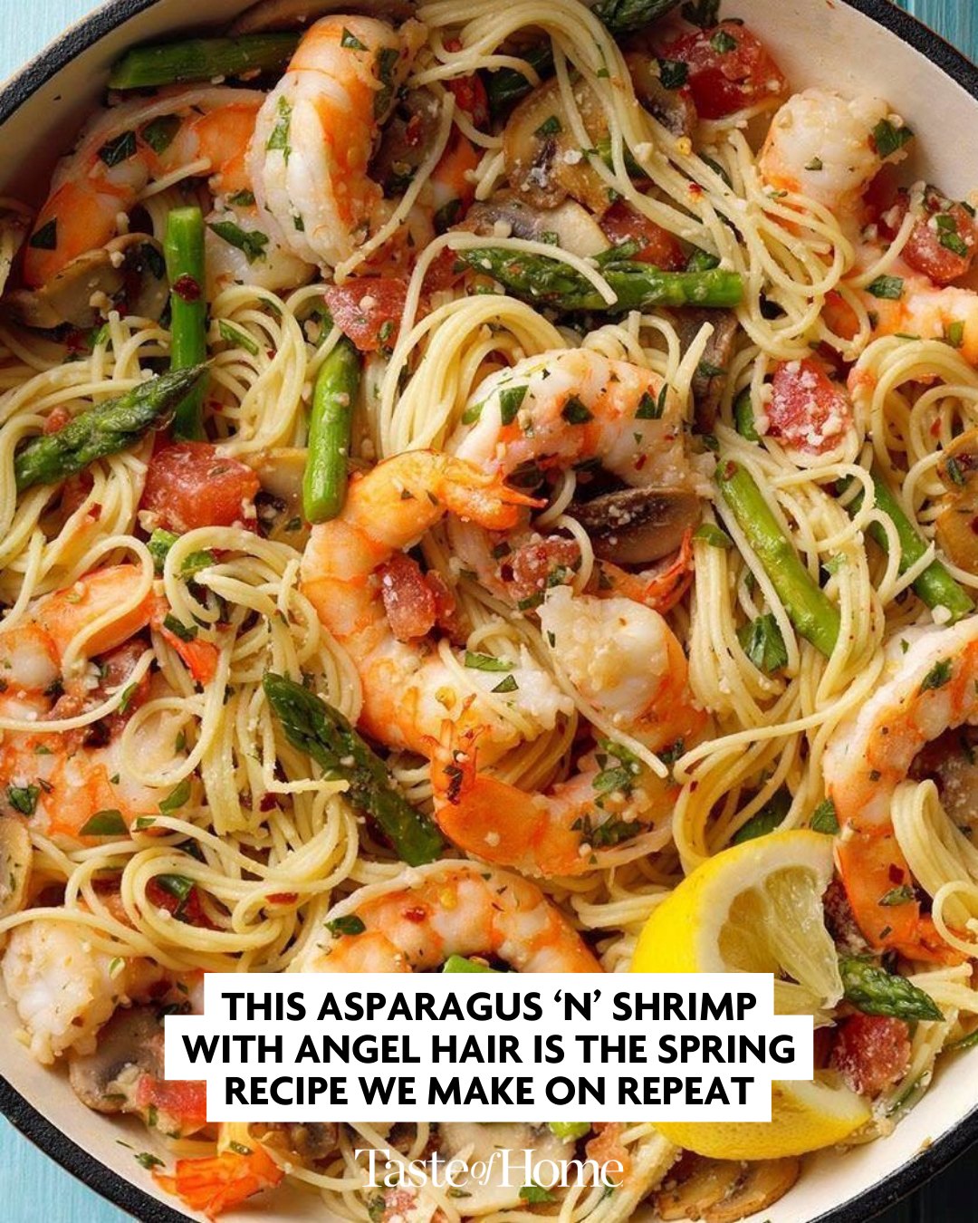 With its succulent pink shrimp, bright, herbal sauce and heaps of angel hair noodles, shrimp asparagus pasta looks like a dish you’d splurge on at a fancy restaurant. However, I’m happy to say that the meal is actually incredibly down-to-earth. Like our favorite easy shrimp recipes, it comes together quickly—although the ingredients list looks long.