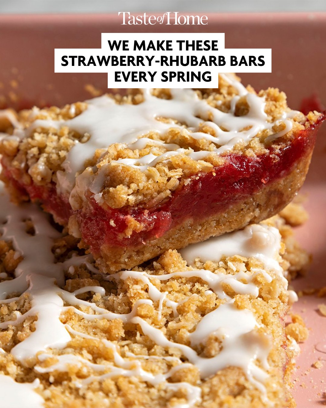 Oats: Our rhubarb-strawberry bars use quick-cooking oats. Avoid subbing in any other type of oats, which can be far too thick and will make the bars hard and gritty.